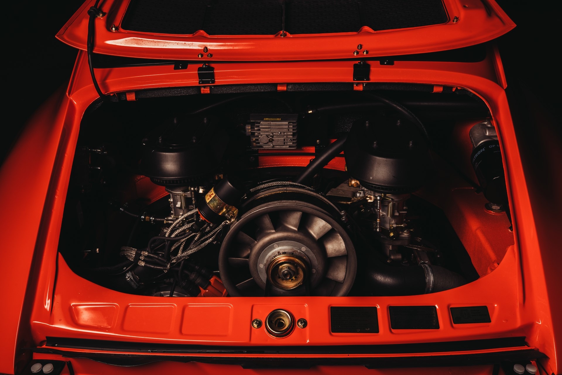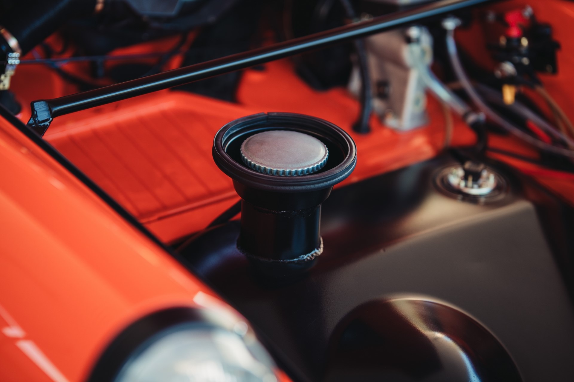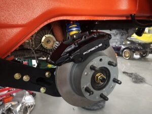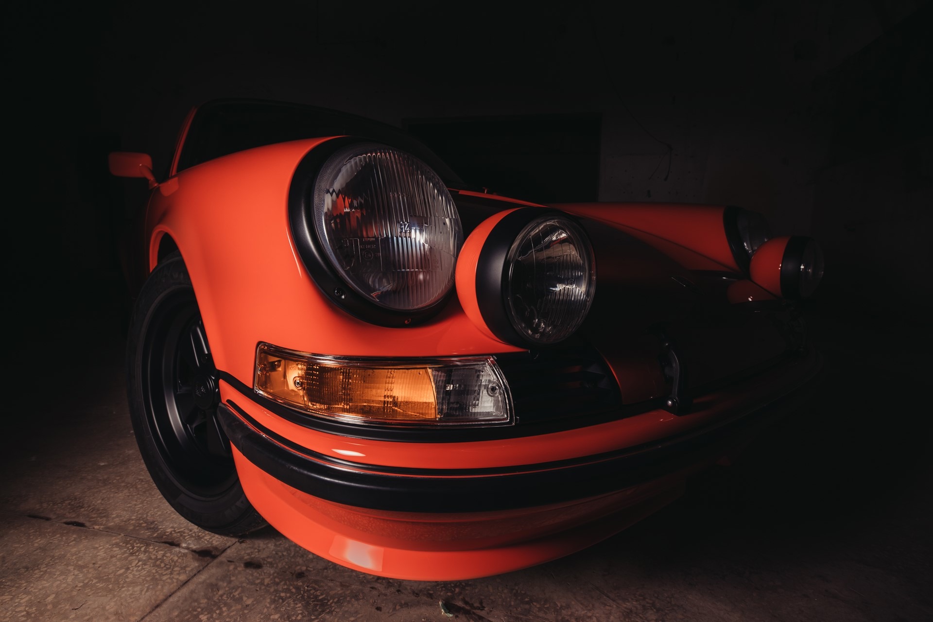 Błotniki od 911SC, klatka bezpieczeństwa, sportowe fotele, hamulce z Boxster 986 + serwo, silnik 3.0 z wałkami od Porsche 993, gwintowane zawieszenie oraz mnóstwo designerskich dodatków, które w czarnym matowym lakierze genialnie komponują się z nadwoziem w kolorze blutorange.