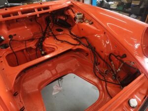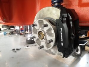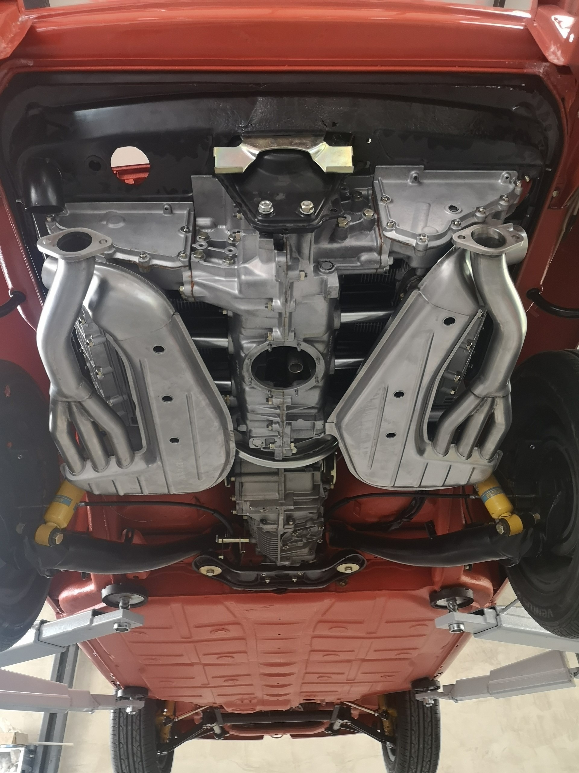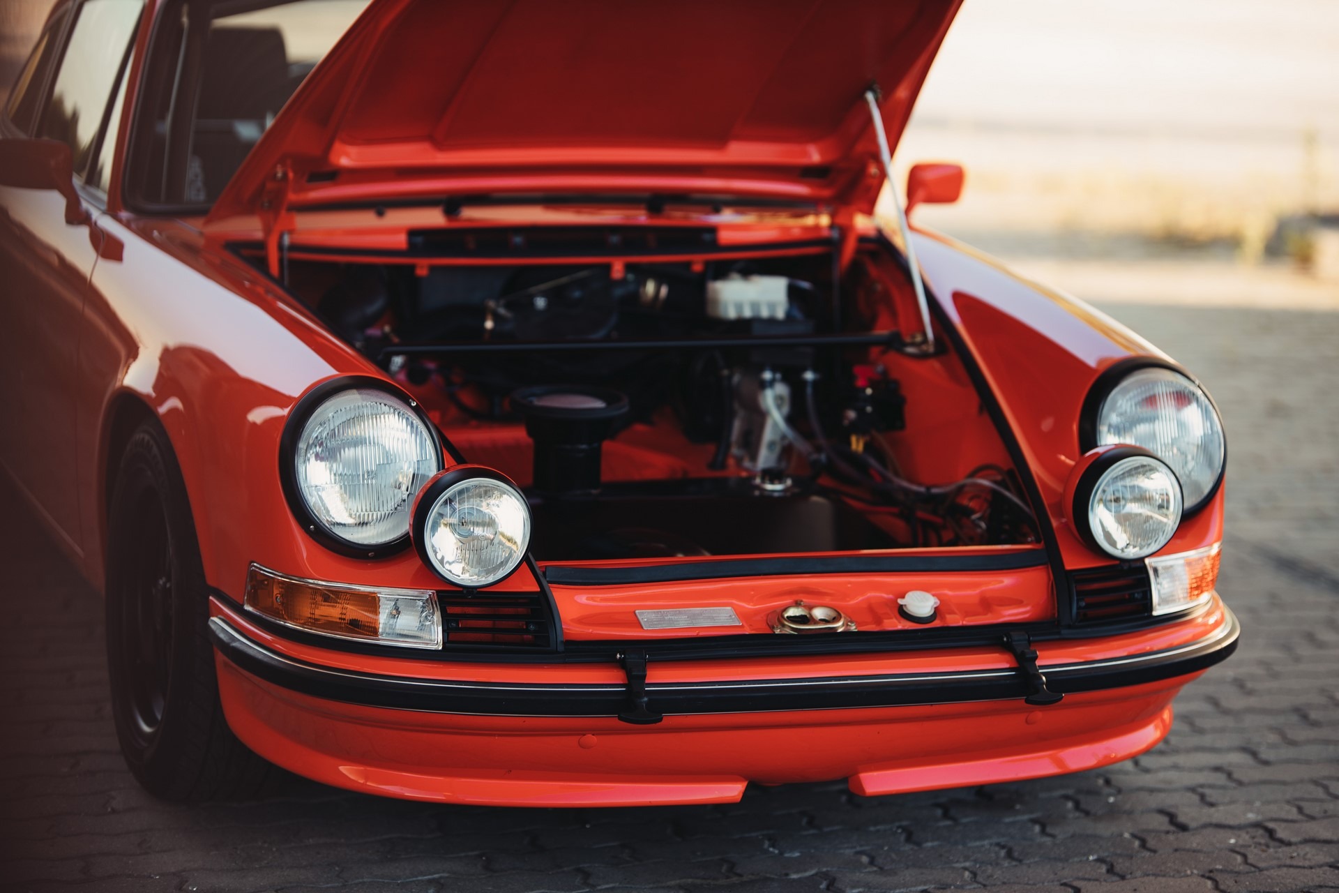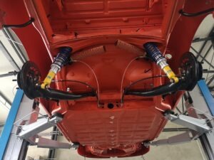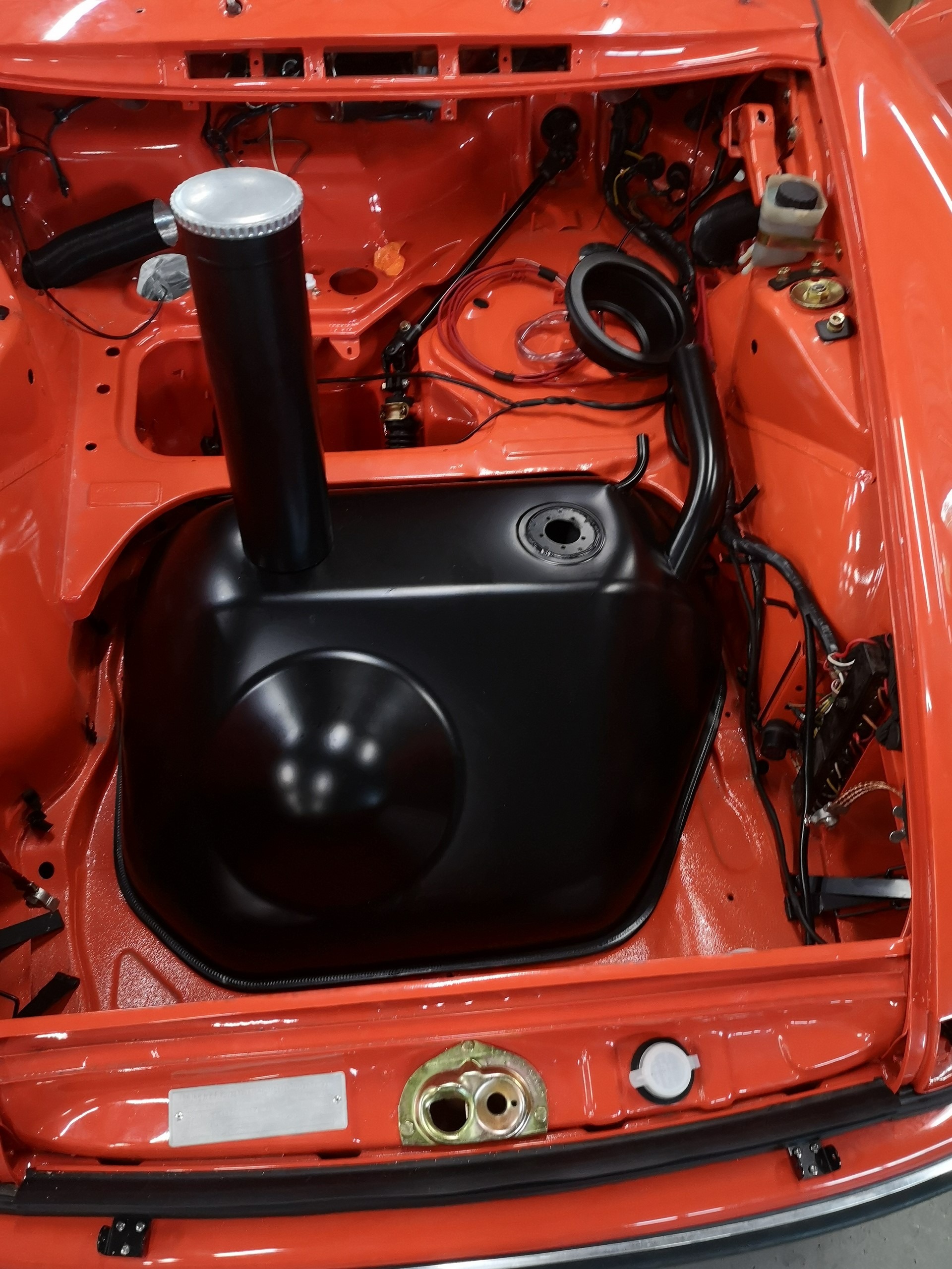Błotniki od 911SC, klatka bezpieczeństwa, sportowe fotele, hamulce z Boxster 986 + serwo, silnik 3.0 z wałkami od Porsche 993, gwintowane zawieszenie oraz mnóstwo designerskich dodatków, które w czarnym matowym lakierze genialnie komponują się z nadwoziem w kolorze blutorange.