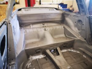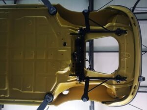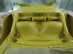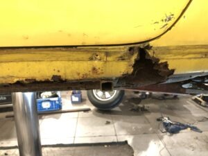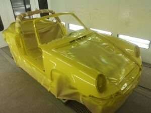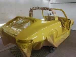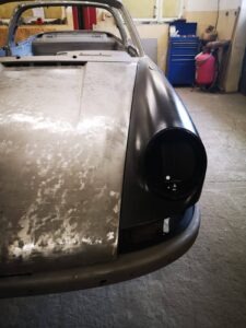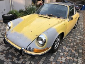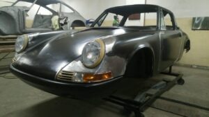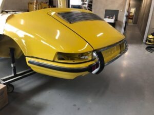 To Porsche w niespotykanej konfiguracji. Silnik z wtryskiem MFI, skrzynia biegów Sportomatic a to wszystko opakowane w nadwoziu Targa w kolorze Canary Yellow. Auto przyjechało do nas z okolic Insbrucka i przeszło długą drogę. Nie wielu wie, że 911- stki z 1969 roku są wyjątkowe. Mają wiele różnic, które występują tylko w tym roczniku. Kompletowanie części stanowiło dla nas nie lada wyzwanie. Simon, bo to on jest posiadaczem tego wspaniałego auta dał nam wolną rękę – zbudujcie to auto jak najlepiej potraficie, żadnych półśrodków! Od początku wiedzieliśmy, że historia auta będzie opisana w Austriackich gazetach AutoClassic oraz Octane co dodało pikanterii całemu przedsięwzięciu. Demontaż następnie odbudowa blacharska.