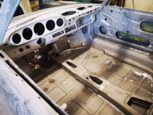 Po konsultacji z Simonem wysyłamy karoserię do Niemczech w celu zabezpieczenia jej kataforezą. To dowód na to, że On nie żartował! Kolejne etapy prac przebiegały bez większych problemów aż do montażu. Tutaj dał się we znaki rok produkcji auta. Drobne różnice w elektryce, inny dach no i skrzynia Sportomatic co zaowocowało przesunięciem terminu zakończenia prac. Tutaj sympatyczny Austriak wykazał się stoickim spokojem i cierpliwością – będę czekał tak długo jak będzie trzeba, mam do Was pełne zaufanie, róbcie swoje – powiedział na wizycie kontrolnej w naszym warsztacie. Uff, kamień z serca. W 2022 dobrneliśmy do finału. Auto otrzymało najwyższą z możliwych not w opinii Austriackiego rzeczoznawcy specjalizującego się w autach klasycznych. Dziś już wiemy, że to nie koniec przygody z naszym przyjacielem zza wschodniej granicy bowiem będziemy budować dla niego kolejne auto. Simon, dziękujemy za zaufanie. Współpraca z Tobą to czysta przyjemność!